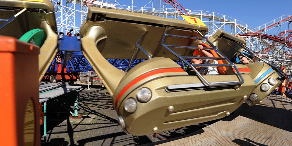 Shock waves will hit as the ultimate thrill ride twists and flips as it spins!